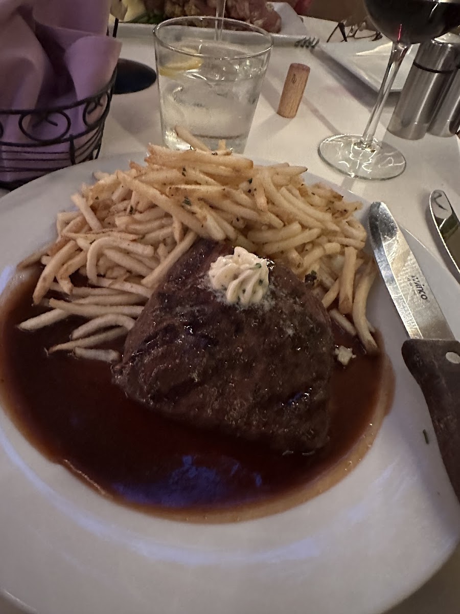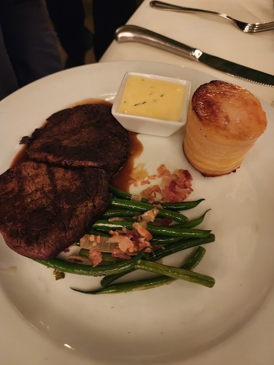 Our server was attentive and other staff ensured we had water and watched to ensure all was well. My sea bass with soy sauce and rice was delicious. However, my friend's flat iron steak wasn't served medium, as ordered, plus it was rather tough. The staff came right away and were nice about replacing it with something else. My Manhattan served 'up' was fabulous. A basket of warm, delicious bread with perfectly soft butter was brought to our table with our cocktails.
