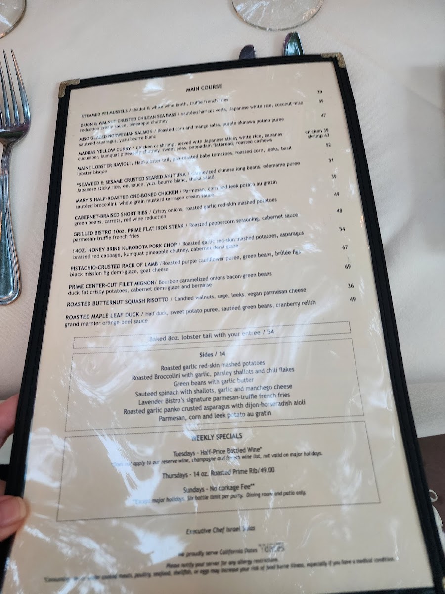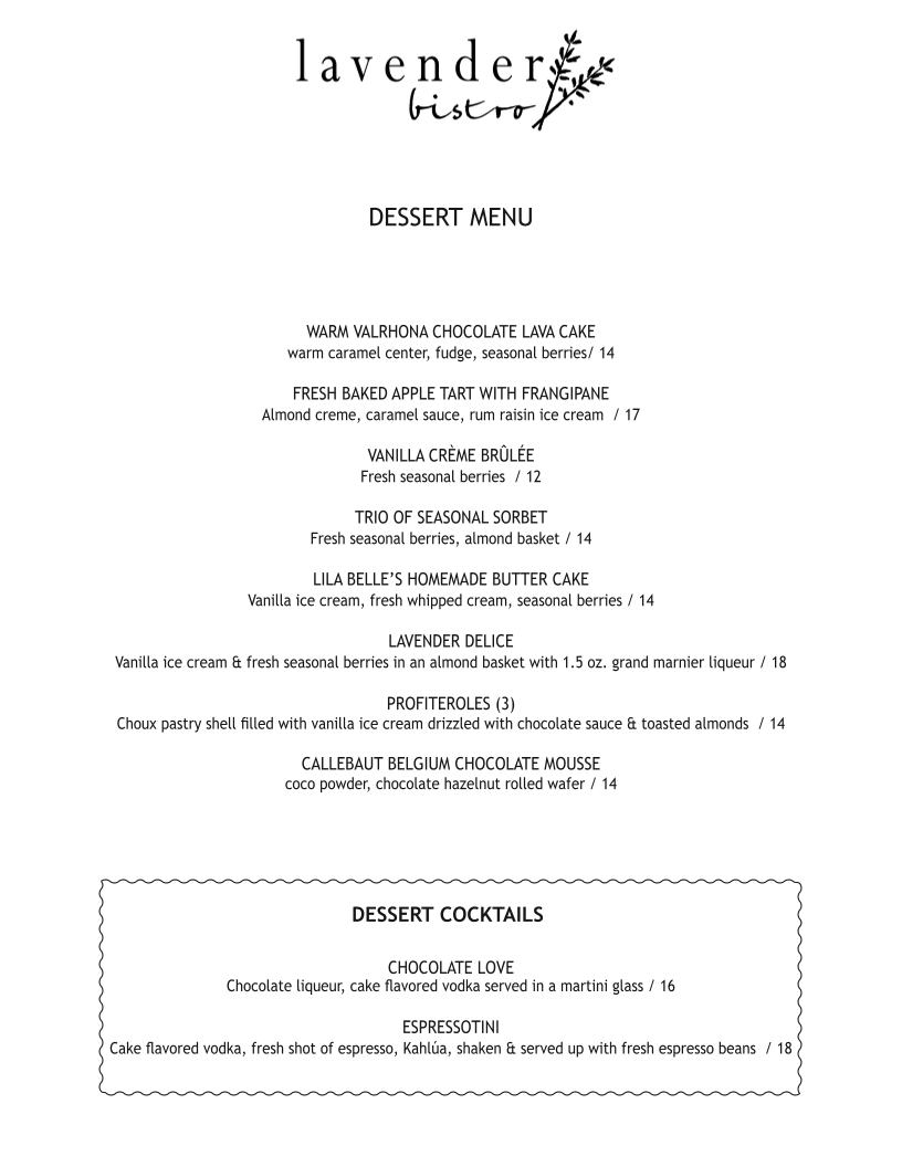 Lavender Bistro Menu